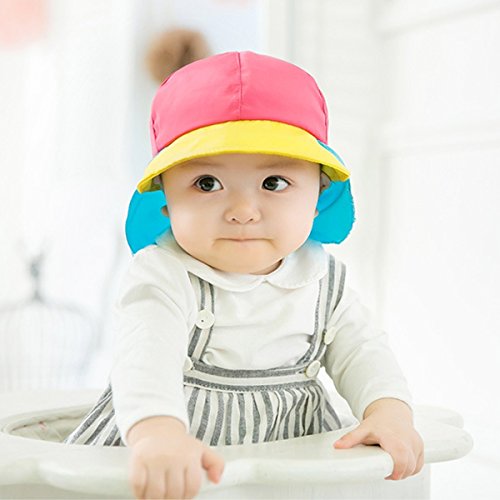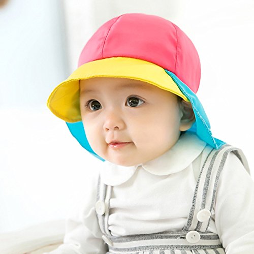 YY-Natuhi ベビー 帽子 女の子 男の子 日よけ帽子 キャップ つば付き バケットハット uv カット 赤ちゃん 新生児 夏 吸湿速乾 子供 お出かけ 紫外線対策 通気性 かわいい 6~12ヶ月 耳まで保護 (2バラ色)