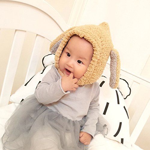 YY-Natuhi ベビー ニット帽子 もこもこ 耳まであったか ハット 男の子 女の子 パイロット キャップ秋冬 防寒 防風 3ヶ月~20ヶ月 新生児 キッズ 赤ちゃん かわいい耳付き (2ブラウン)