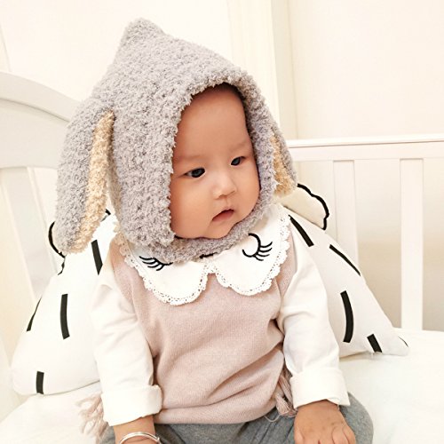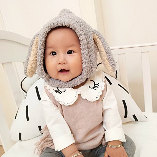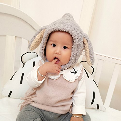 YY-Natuhi ベビー ニット帽子 もこもこ 耳まであったか ハット 男の子 女の子 パイロット キャップ秋冬 防寒 防風 3ヶ月~20ヶ月 新生児 キッズ 赤ちゃん かわいい耳付き (1グレー)