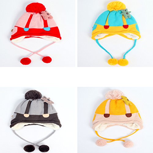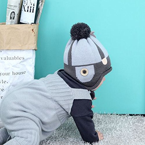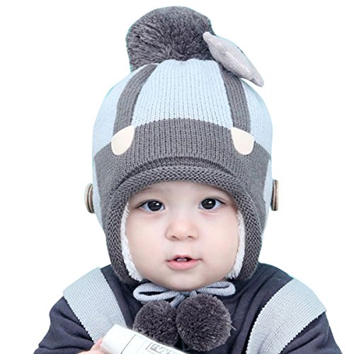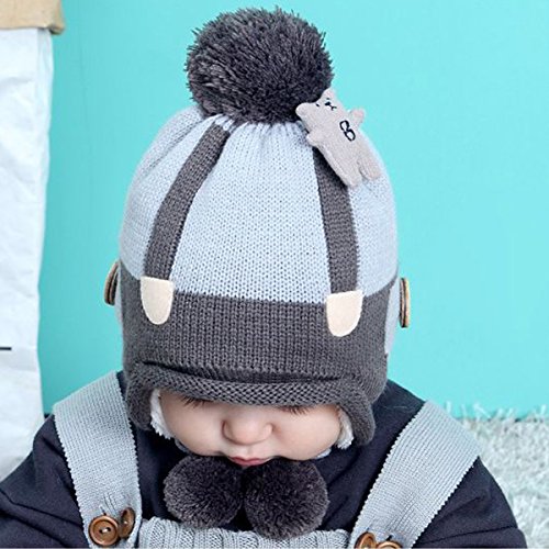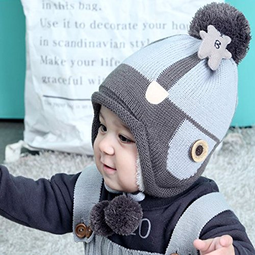 YY-Natuhi ベビー ニット帽子 男の子 女の子 飛行帽 パイロットキャップ 裏起毛 耳あて 秋冬 防寒 防風 子供 新生児 キッズ 赤ちゃん ハット かわいい ボンボン付き 4ヶ月~20ヶ月 (3グレー)
