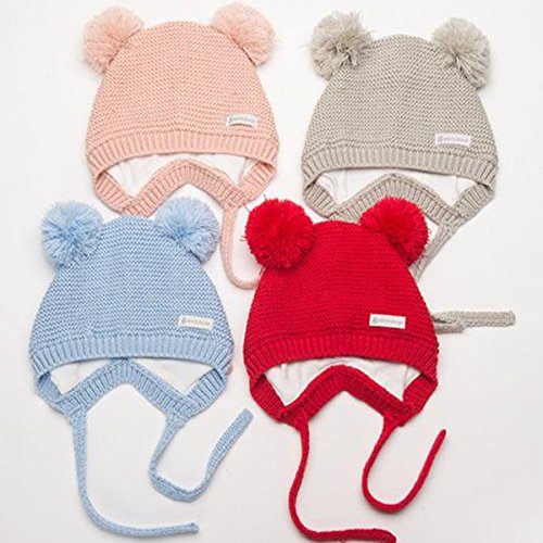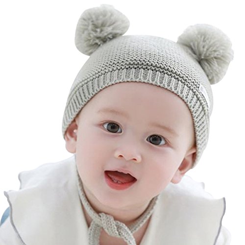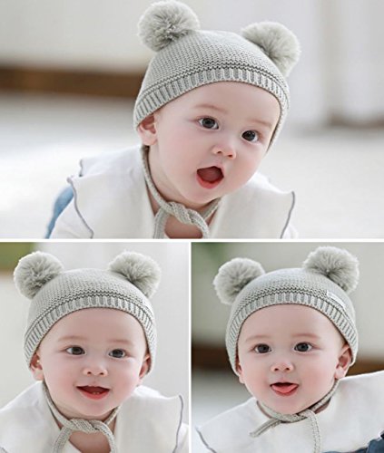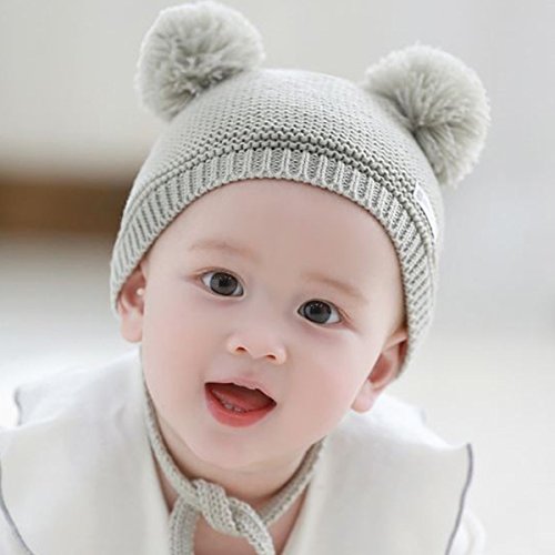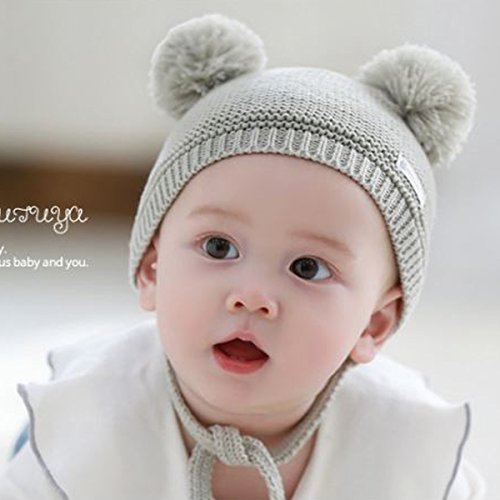 YY-Natuhi ベビー ニット帽子 男の子 女の子 新生児 帽子 ボンボン とんがり ハット キャップ 秋冬 キッズ 赤ちゃん 子供 かわいい 防寒 防風 3ヶ月~18ヶ月 アウトドア (2グレー)