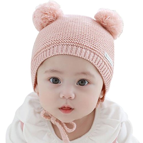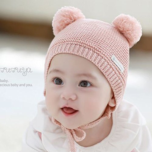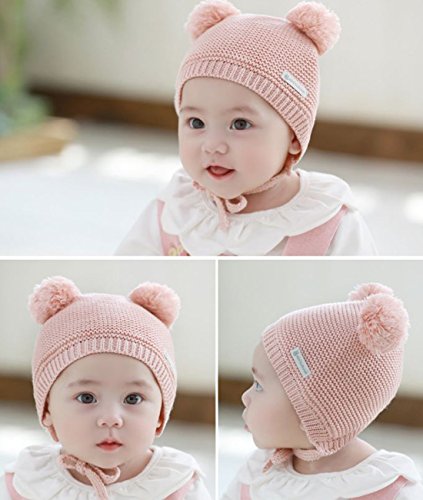YY-Natuhi ベビー ニット帽子 男の子 女の子 新生児 帽子 ボンボン とんがり ハット キャップ 秋冬 キッズ 赤ちゃん 子供 かわいい 防寒 防風 3ヶ月~18ヶ月 アウトドア (4ピンク)