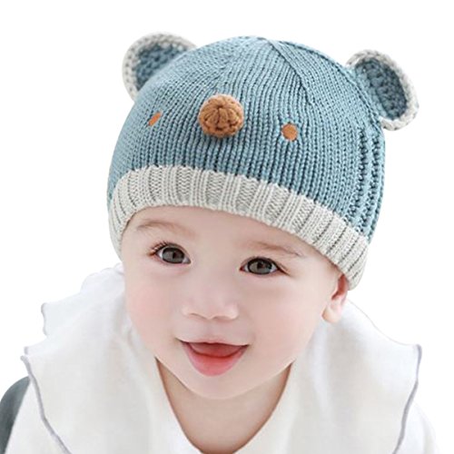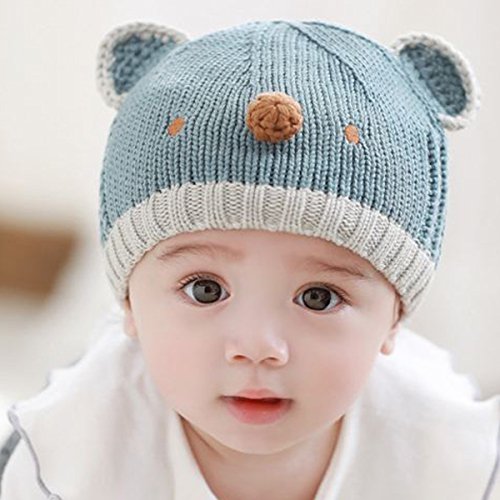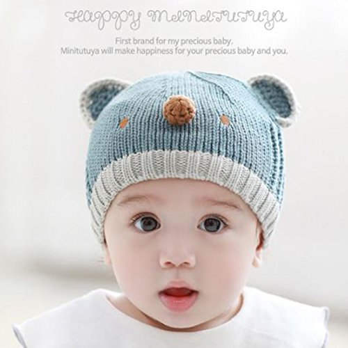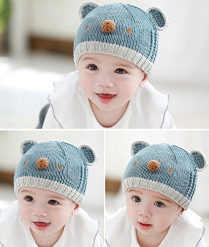 YY-Natuhi ベビー ニット帽子 男の子 女の子 新生児 帽子 耳付き とんがり ハット キャップ 秋冬 キッズ 赤ちゃん 子供 かわいい 防寒 防風 1~3歳 アウトドア クマちゃん (4ライトブルー)