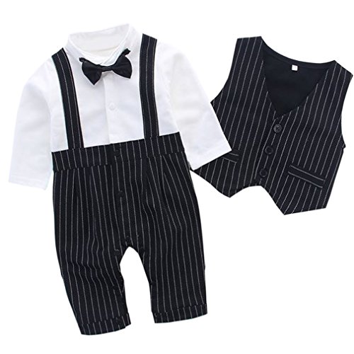 YY-Shop ベビー服 男の子 ロンパース 制服 赤ちゃん カバーオール 新生児 子供服 キッズ ベビースーツ 綿 フォーマル 蝶ネクタイ 長袖 紳士服 (L, 1ブラック)