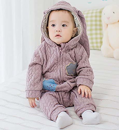 YY-Shop ベビー服 ロンパース フード付き 女の子 新生児 ボディースーツ 男の子 赤ちゃん 出産祝い カバーオール かわいい ベビースーツ 長袖 秋冬 暖かい (80, 1ピンク)