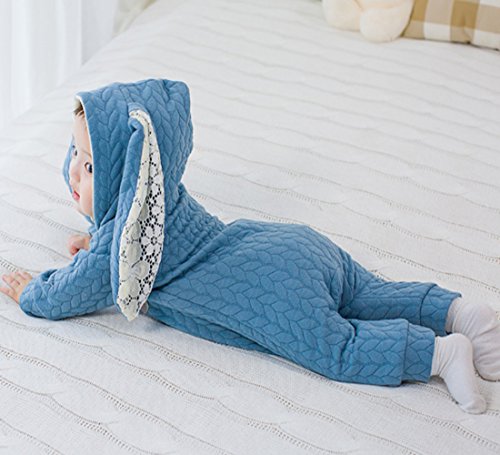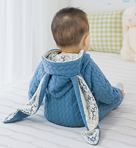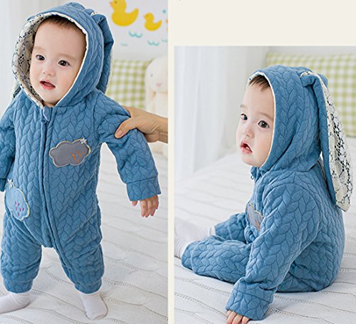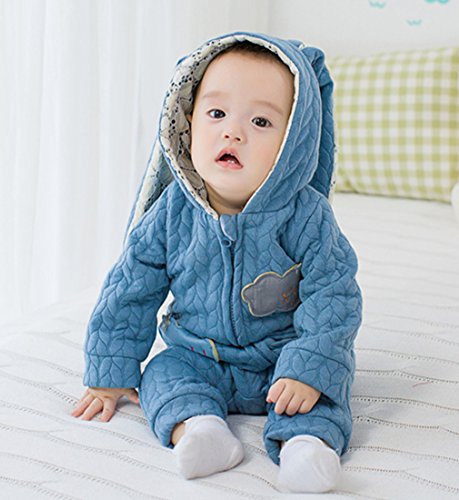 YY-Shop ベビー服 ロンパース フード付き 女の子 新生児 ボディースーツ 男の子 赤ちゃん 出産祝い カバーオール かわいい ベビースーツ 長袖 秋冬 暖かい (90, 2ブルー)
