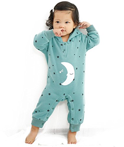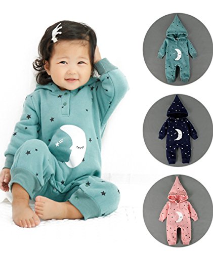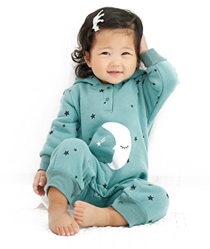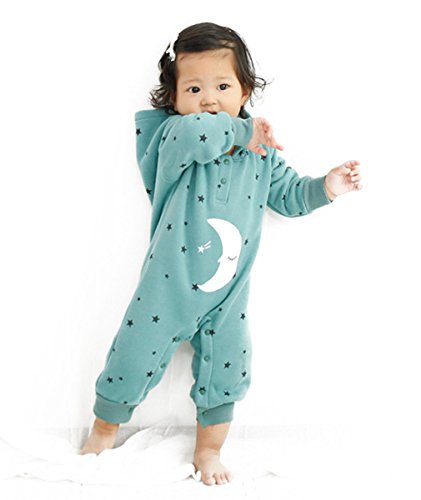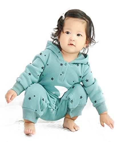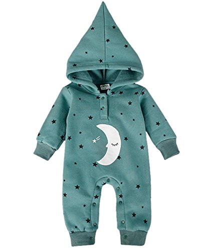 YY-Shop ベビー服 ロンパース フード付き 女の子 新生児 ボディースーツ 男の子 赤ちゃん 出産祝い カバーオール かわいい ベビースーツ 長袖 秋冬 星柄 (80cm, 3グリーン)