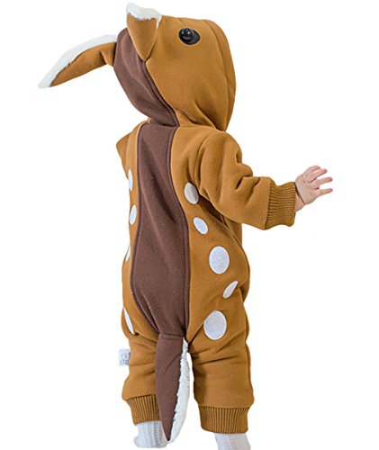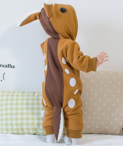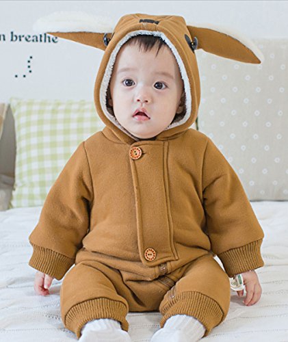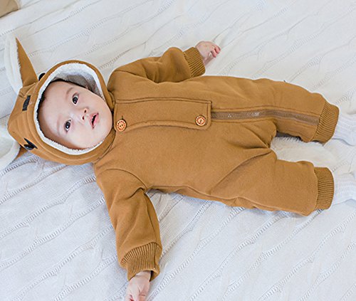 YY-Shop ベビー服 ロンパース フード付き 前開き 女の子 新生児 ボディースーツ 男の子 赤ちゃん 出産祝い カバーオール かわいい ベビースーツ 長袖 秋冬 裏起毛 水玉 (90cm, 2ブラウン)