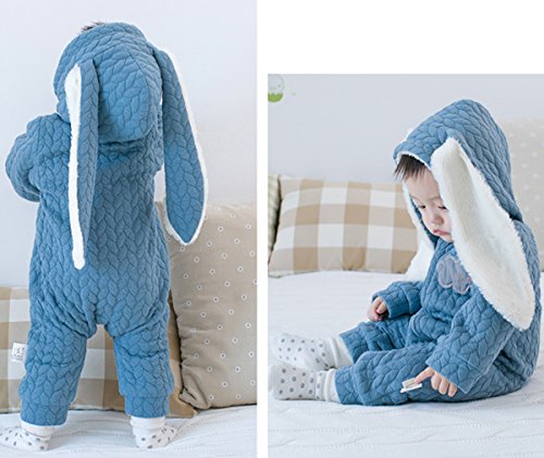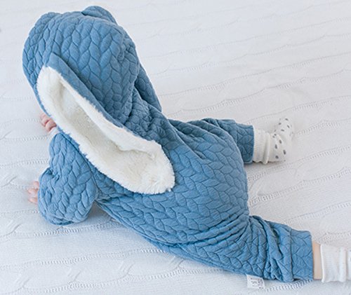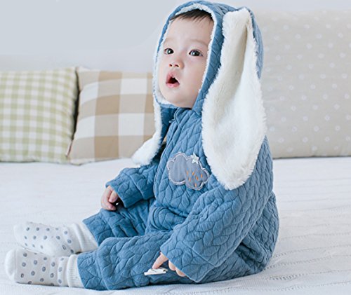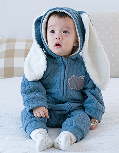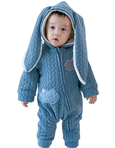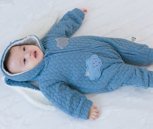 YY-Shop ベビー服 ロンパース フード付き 女の子 新生児 ボディースーツ 男の子 赤ちゃん 出産祝い カバーオール かわいい ベビースーツ 長袖 秋冬 暖かい (90, 4裏起毛*ブルー)