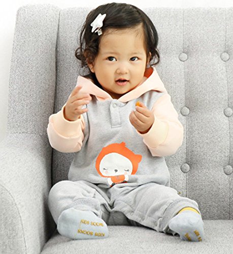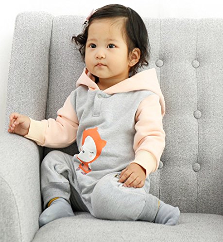 YY-Shop ベビー服 ロンパース ベビー帽子 女の子 新生児 ボディースーツ 男の子 赤ちゃん 出産祝い カバーオール かわいい ベビースーツ 長袖 秋冬 裏起毛 (95cm, 2ピンク)