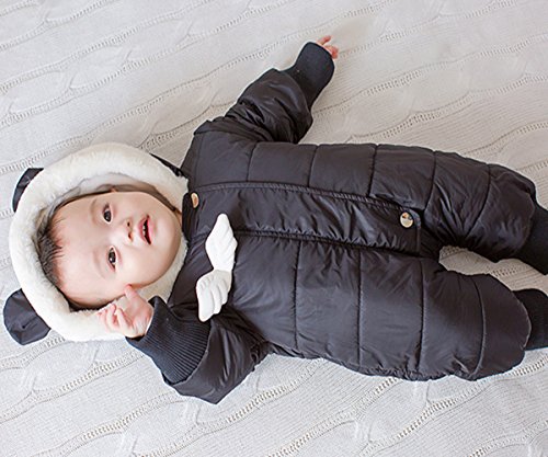 YY-Shop ベビー服 新生児服 ロンパース 着ぐるみ 冬服 天使 厚手 女の子 男の子 ボディースーツ 赤ちゃん 出産祝い カバーオール かわいい ベビースーツ 長袖 暖かい (66cm, 2ブラック)
