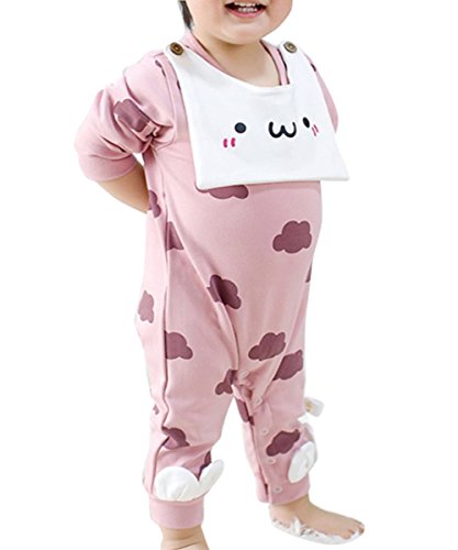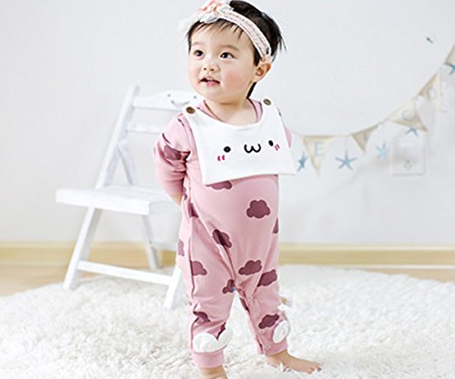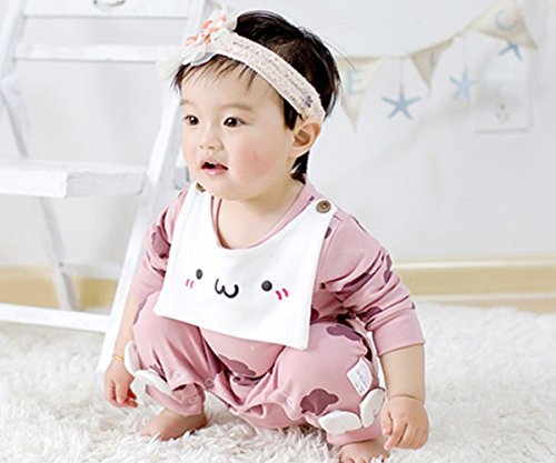 YY-Natuhi ベビー服 よだれかけ ビブ 二点セット 女の子 男の子 ロンパース 新生児 赤ちゃん ボディースーツ 肌着 出産祝い 子供服 綿 長袖 七五三 カバーオール 顔文字 スタイ (80cm, 2ピンク)