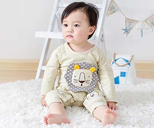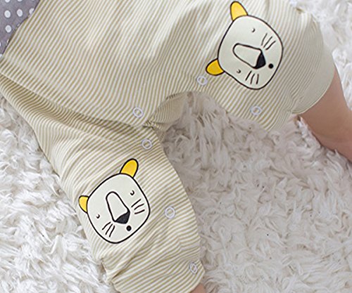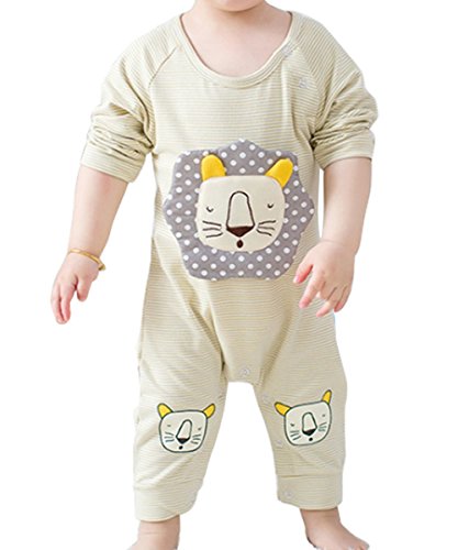 YY-Natuhi ベビー服 女の子 男の子 ロンパース 新生児 赤ちゃん ボディースーツ 肌着 出産祝い 子供服 綿 長袖 七五三 カバーオール かわいい ストライブ ライオン柄 (73cm, 1ベージュ)