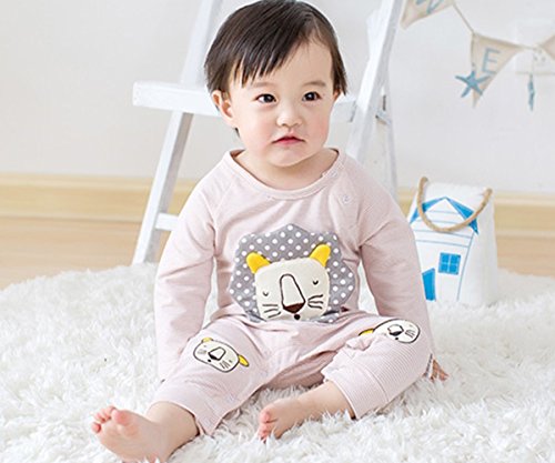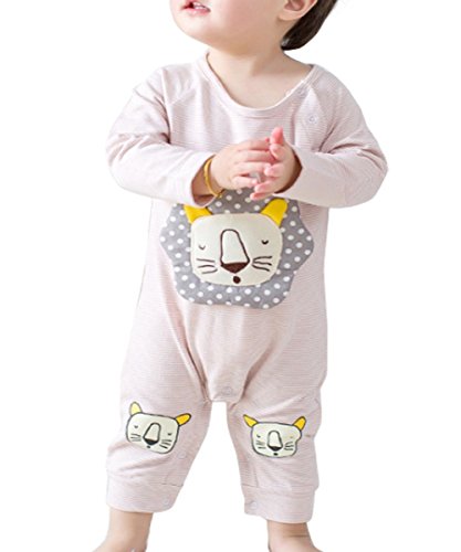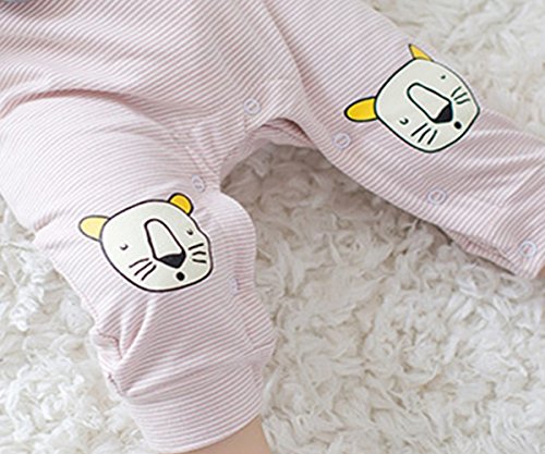 YY-Natuhi ベビー服 女の子 男の子 ロンパース 新生児 赤ちゃん ボディースーツ 肌着 出産祝い 子供服 綿 長袖 七五三 カバーオール かわいい ストライブ ライオン柄 (73cm, 2ピンク)