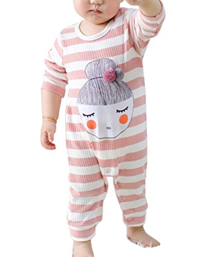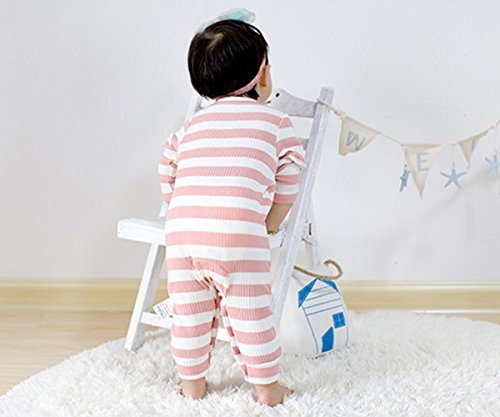 YY-Natuhi ベビー服 女の子 男の子 ロンパース 新生児 赤ちゃん ボディースーツ 肌着 出産祝い 子供服 綿 長袖 七五三 カバーオール かわいい ストライブ柄 前開き (80cm, 2ピンク)