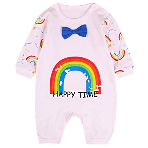YY-Natuhi ベビー服 女の子 男の子 ロンパース 新生児 赤ちゃん ボディースーツ 肌着 出産祝い 子供服 綿 長袖 七五三 カバーオール かわいい 前開き ベビースーツ 春 カラフル (66cm(3~6ヶ月), 1虹柄*ホワイト)