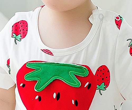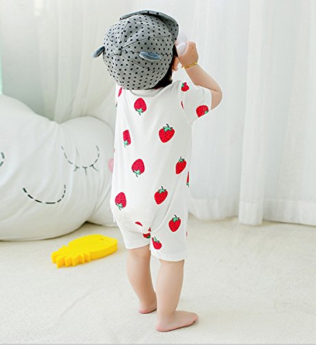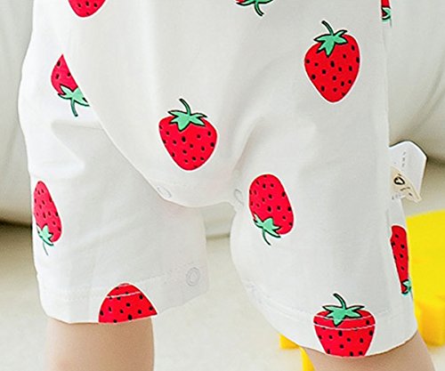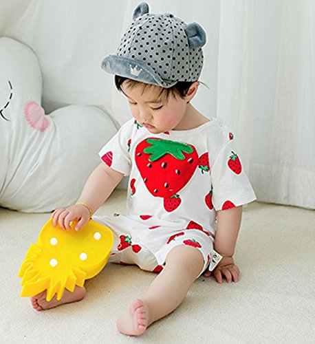 YY-Natuhi ベビー服 女の子 男の子 ロンパース カバーオール 半袖 新生児 前開き コットン 赤ちゃん ボディースーツ 肌着 ベビースーツ 出産祝い 子供服 七五三 かわいい イチゴ柄 夏服 (73cm, 1レッド)