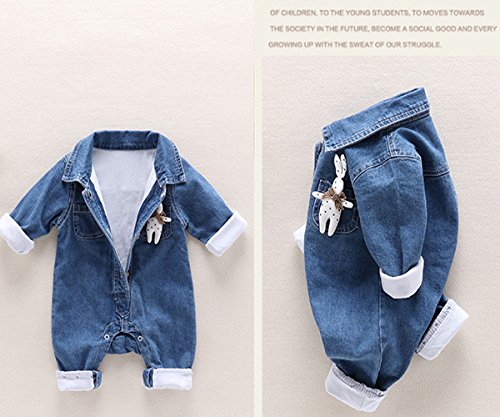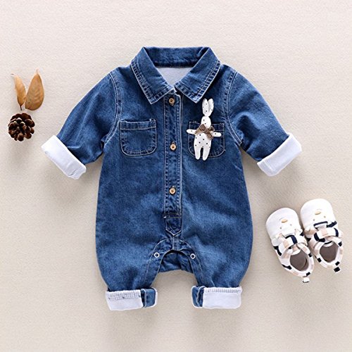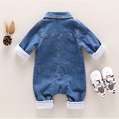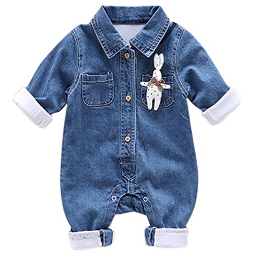 YY-Natuhi ベビー服 女の子 男の子 ロンパース カバーオール 新生児 秋冬 長袖 赤ちゃん 肌着 ボディスーツ 着ぐるみ コットン 出産祝い 男女兼用 かわいい デニム (80cm)