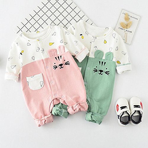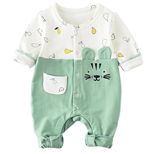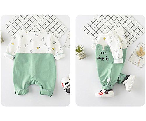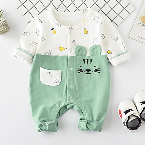 YY-Natuhi 2018新着 ベビー服 ロンパース カバーオール 新生児 男の子 女の子 長袖 可愛い 前開き 肌着 ネコちゃん 95%綿 出産祝い 赤ちゃん 子供服 七五三 ベビースーツ 春夏秋 撮影服 (80cm, 2グリーン)