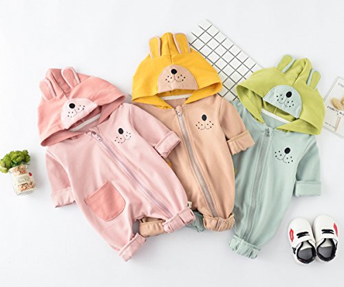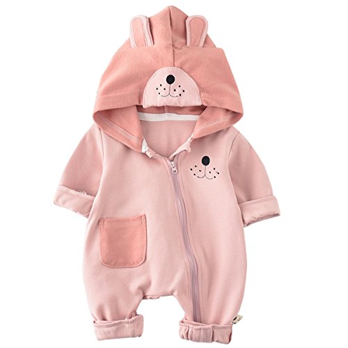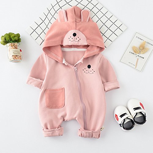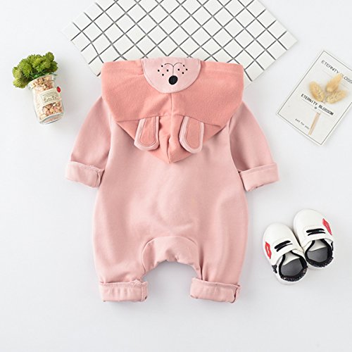 YY-Natuhi 2018新着 ベビー服 ロンパース カバーオール 新生児 男の子 女の子 長袖 可愛い ジッパー 肌着 フード付き 95%綿 出産祝い 赤ちゃん 子供服 七五三 ベビースーツ 春夏秋 犬 着ぐるみ (90cm, 2ピンク)
