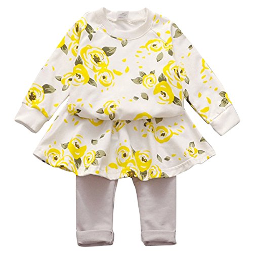 YY-Natuhi ベビー服 子供服 女の子 ブラウン スカート レギンス 二点セット キッズ 新生児 ボディースーツ ベビー 長袖 赤ちゃん 入学式 出産祝い 七五三 花柄 パーカー 入園式 (100cm, 2イエロー)