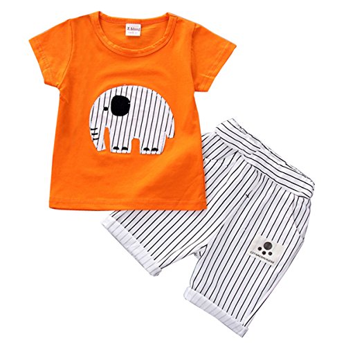 YY-Natuhi ベビー服 子供服 男の子 女の子 上下2点セット 半袖 トップス ズボン トレーナー キッズ服 春夏 幼児 0~3歳 ルームウェア セットアップ ボーイズ かわいい 象柄 シャツ (90cm(身長85~95cm), 3オレンジ)