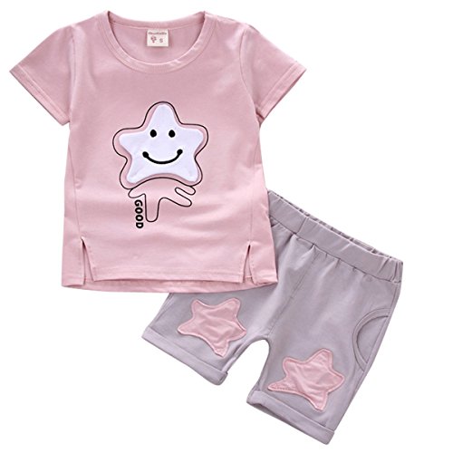 YY-Natuhi ベビー服 子供服 男の子 女の子 上下2点セット 半袖 トップス ズボン トレーナー キッズ服 春夏 幼児 0~3歳 ルームウェア セットアップ ボーイズ かわいい 星 シャツ (80cm(身長75~85cm), 2ピンク)