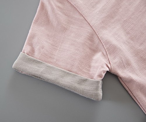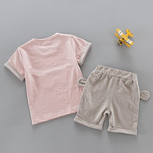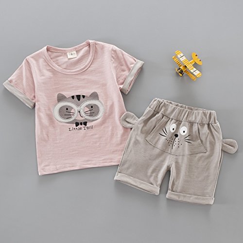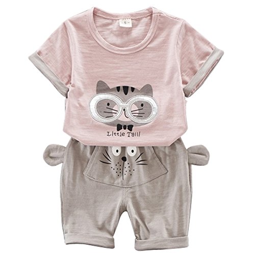YY-Natuhi ベビー服 子供服 男の子 女の子 上下2点セット 半袖 トップス ズボン トレーナー キッズ服 春夏 幼児 0~3歳 ルームウェア セットアップ ボーイズ かわいい 猫柄 シャツ ショートパンツ (S(身長65~75cm), 1ピンク)