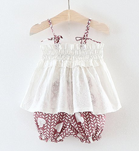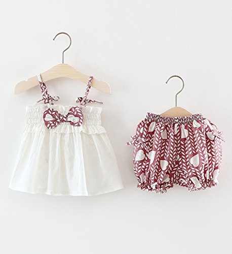YY-Natuhi ベビー服 子供服 女の子 キャミソール ワンピース パンツ 二点セット リボン付き ハート柄 ブラウス トップス 夏 かわいい 通気性 ドレス キッズ 女児 入園式 卒園式 赤ちゃん 七五三 (85cm, 1ピンク)