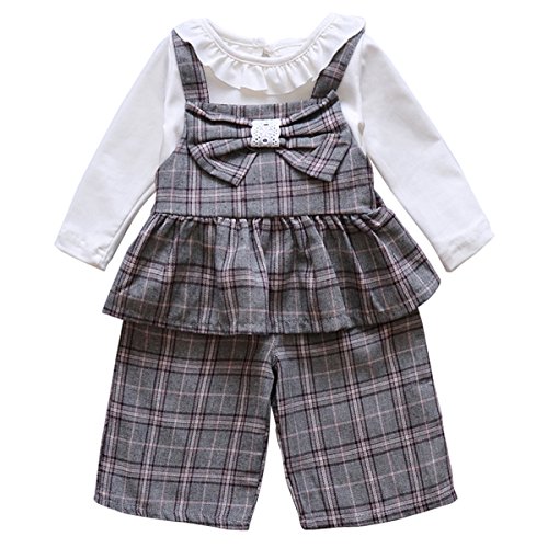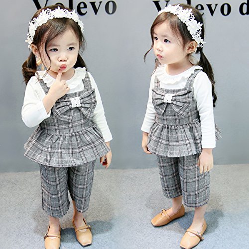 YY-Natuhi ベビー服 子供服 女の子 ブラウス ロングズボン キャミソール 三点セット ベビースーツ 長袖 キッズ服 フォーマル チェック柄 シャツ パンツ 春 入園式 入学式 発表会 出産祝い 七五三 (90cm)