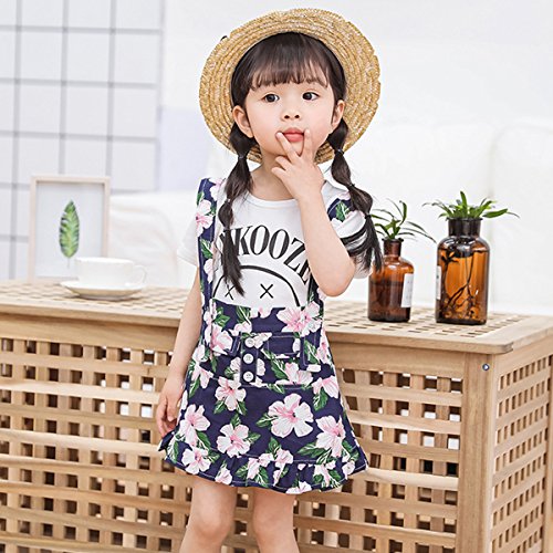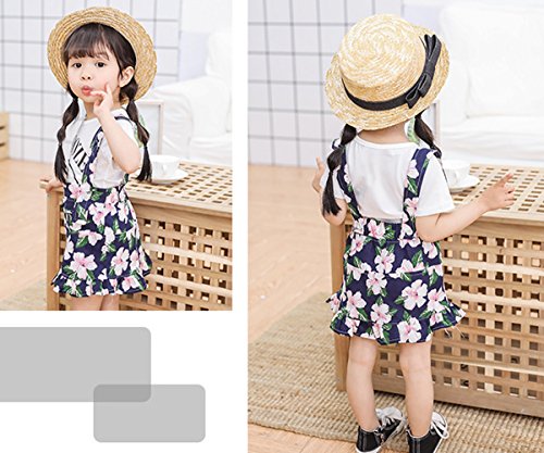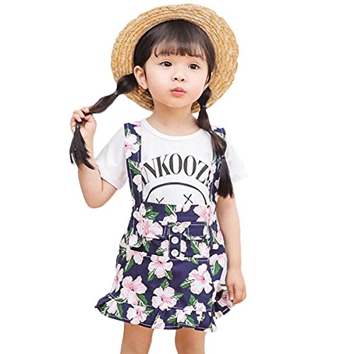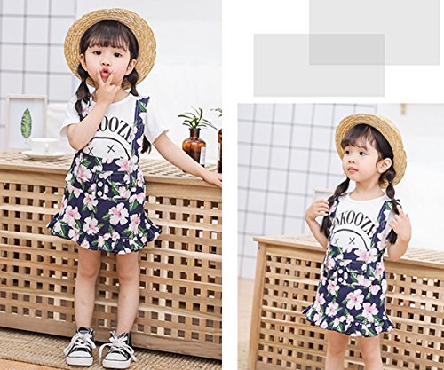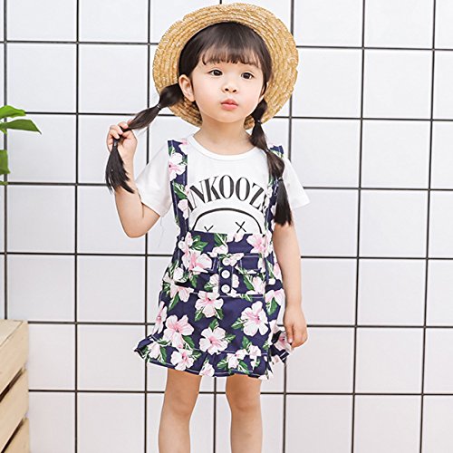 YY-Natuhi ベビー服 子供服 女の子 tシャツ ワンピース 二点セット サロペット スカート 花柄 半袖 春夏 可愛い キッズ 新生児 赤ちゃん カジュアル ブラウス 通園 通学 (80cm, 2ネイビー)