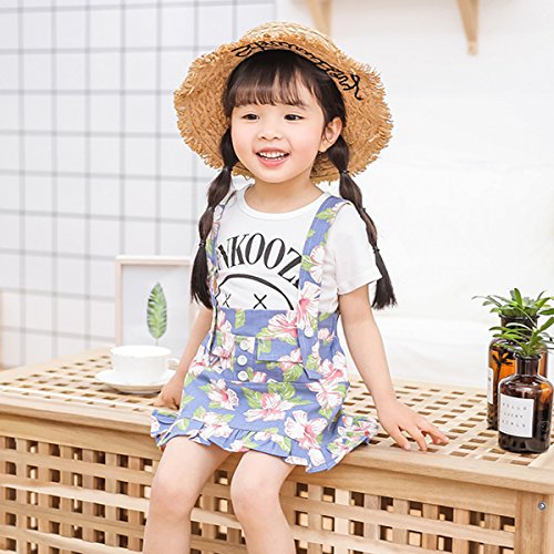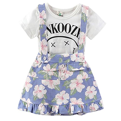 YY-Natuhi ベビー服 子供服 女の子 tシャツ ワンピース 二点セット サロペット スカート 花柄 半袖 春夏 可愛い キッズ 新生児 赤ちゃん カジュアル ブラウス 通園 通学 (100cm, 1ブルー)