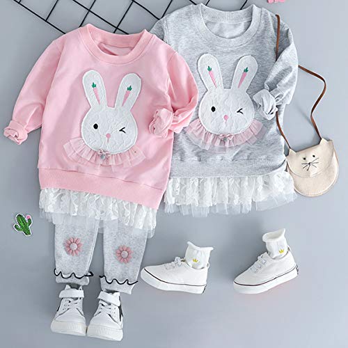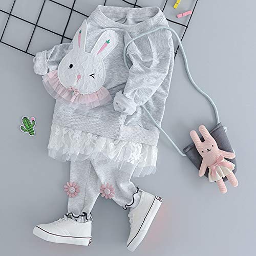 YY-Natuhi ベビー 女の子 セットアップ ブラウス レギンス 2点セット ウサギ 可愛い トレーナー スウェット 長袖 子供服 キッズ ジャージ レース 秋冬 通学 お出かけ 結婚式 入園式 (70cm, 2グレー)