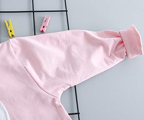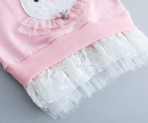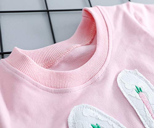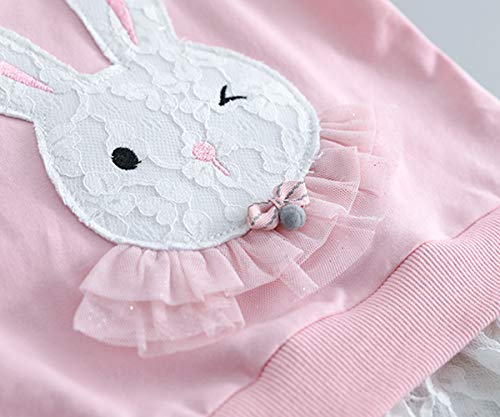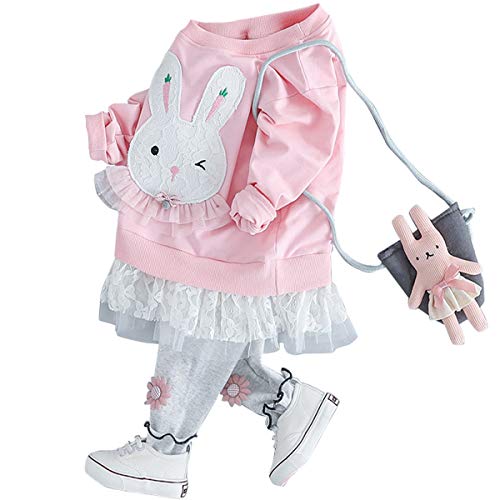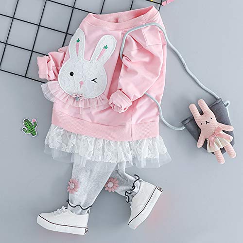 YY-Natuhi ベビー 女の子 セットアップ ブラウス レギンス 2点セット ウサギ 可愛い トレーナー スウェット 長袖 子供服 キッズ ジャージ レース 秋冬 通学 お出かけ 結婚式 入園式 (90cm, 1ピンク)