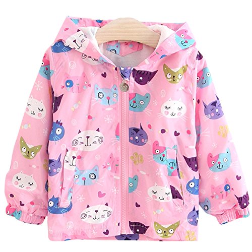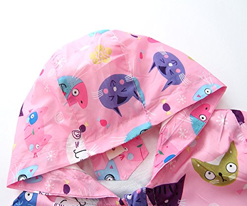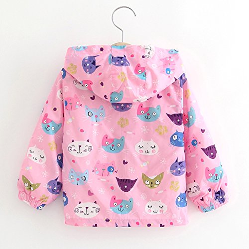 YY-Natuhi ベビー服 子供服 女の子 アウター コート かわいい キッズ ジャケット フード付き カーディガン 長袖 おしゃれ 女児 防寒 防風 トレンチコート ピンク 猫柄 (100cm)