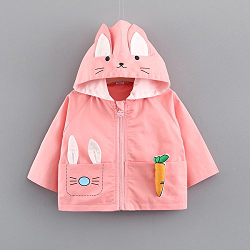 YY-Natuhi ベビー服 子供服 女の子 男の子 アウター コート かわいい キッズ ジャケット カーディガン 長袖 おしゃれ 女児 防寒 トレンチコート 通園 通学 ウサギ 男女兼用 秋冬 (90cm, 2ピンク)
