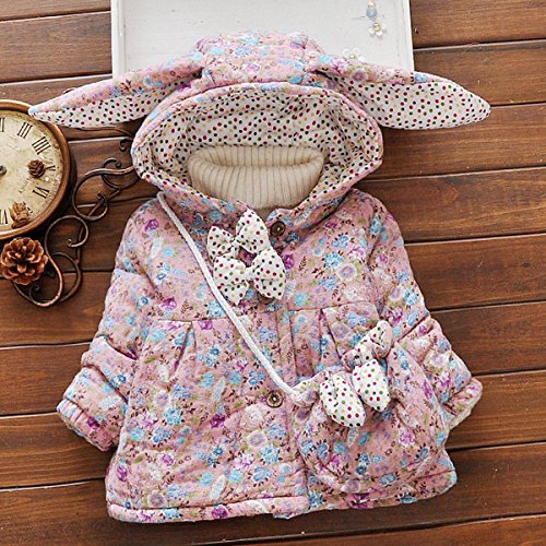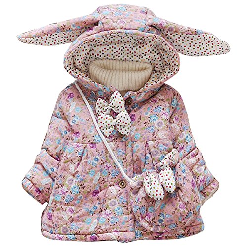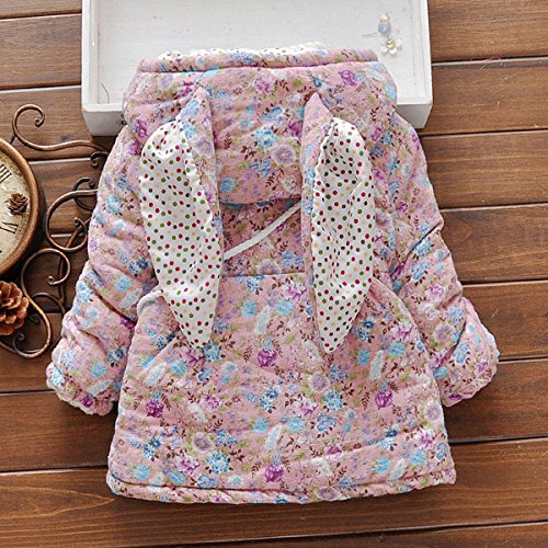 YY-Natuhi ベビー服 女の子 中綿ジャケット 綿服 子供服 花柄 かわいい ダウンジャケット 中綿コート フード付き 秋冬 キッズ ガールズ 保温防寒 80~100cm 通園 (100cm)