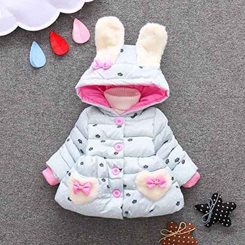 YY-Natuhi ベビー服 女の子 中綿ジャケット 綿服 かわいい キッズ 子供服 ダウンジャケット 中綿コート 秋冬 保温防寒 80~100cm 通園 アウター フード付き 赤ちゃん 新生児 ウサギ耳 (80cm, 1ライトブルー)
