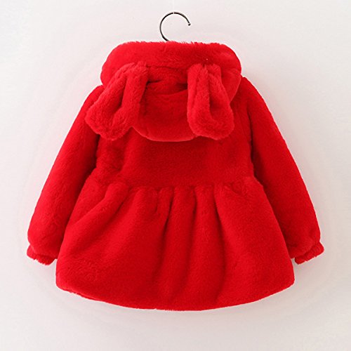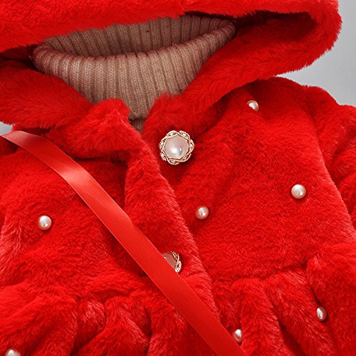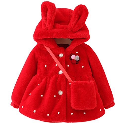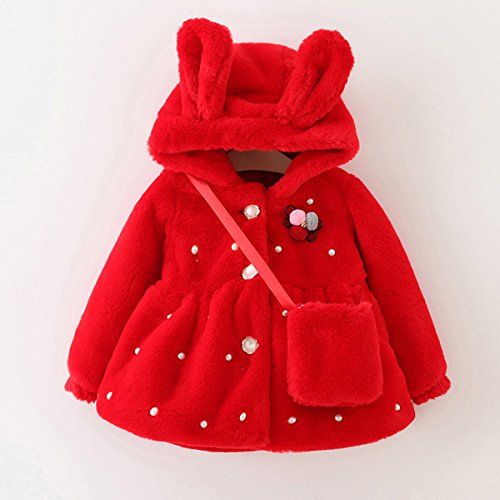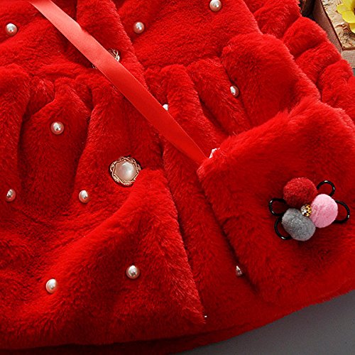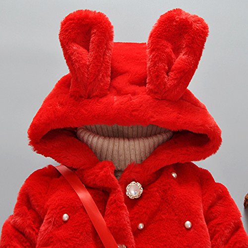 YY-Natuhi ベビー服 女の子 ファーコート ファージャケット 秋冬 アウター パール フェイクファー 可愛い キッズ服 子供服 プリンセス フォーマル クリスマス お正月 結婚式 発表会 ウサギ耳 (90cm, 1レッド)