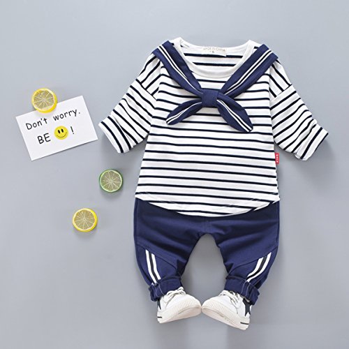 YY-Natuhi ベビー服 子供服 男の子 tシャツ 長ズボン 上下2点セット 長袖 トップス トレーナー セットアップ キッズ服 秋冬 新生児 ボーイズ かわいい スポーツ ストライブ柄 (80cm, 2ブラック)