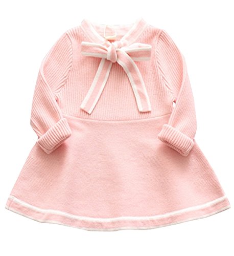 YY-Natuhi ベビー服 子供服 女の子 ワンピース ニット セーター キッズ ドレス 新生児 ボディースーツ ベビー 長袖 赤ちゃん 入学式 出産祝い 七五三 リボン ベビースーツ (70cm, 1ピンク)