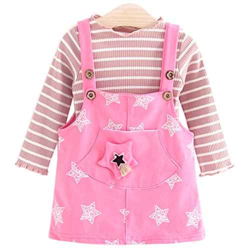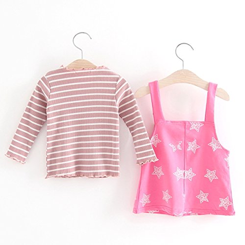 YY-Natuhi ベビー服 子供服 女の子 ワンピース ニットセーター 二点セット サロペット スカート ブラウン ストライブ柄 キッズ 新生児 ベビー 長袖 赤ちゃん 綿 秋冬 入園式 お出かけ (80cm, 1ピンク)