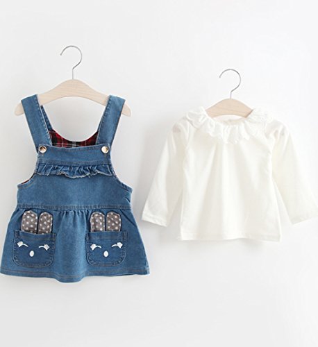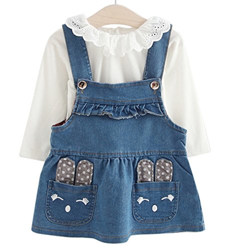 YY-Natuhi ベビー服 子供服 女の子 デニム ワンピース ブラウン 二点セット サロペット キッズ スカート 新生児 ボディースーツ ベビー 長袖 赤ちゃん 入学式 出産祝い 七五三 ドレス ウサギ (85cm)