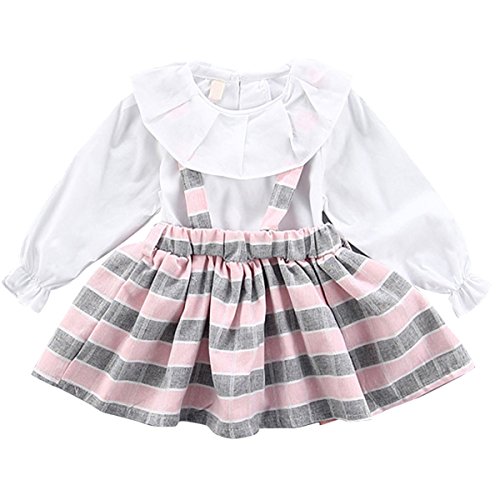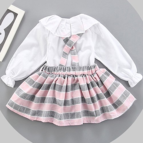 YY-Natuhi ベビー服 子供服 女の子 ワンピース ブラウン 二点セット サロペット キッズ スカート 新生児 ボディースーツ ベビー 長袖 赤ちゃん 入学式 出産祝い 七五三 ドレス チェック柄 (80cm, 2ピンク)