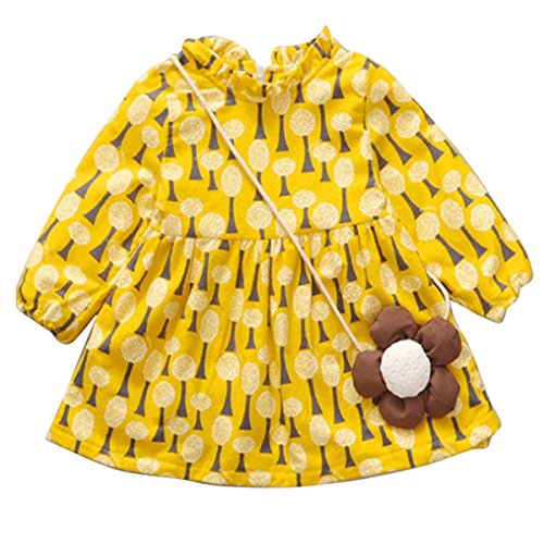 YY-Natuhi ベビー服 子供服 女の子 ワンピース キッズ ドレス 新生児 ボディースーツ ベビー 長袖 赤ちゃん 入学式 出産祝い 七五三 綿 ベビースーツ 木の葉 かわいい (100cm, イエロー)