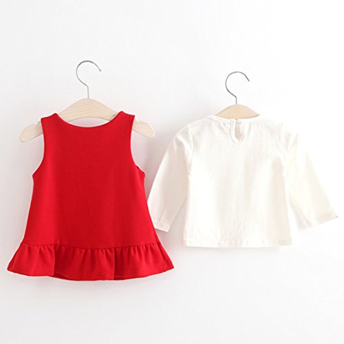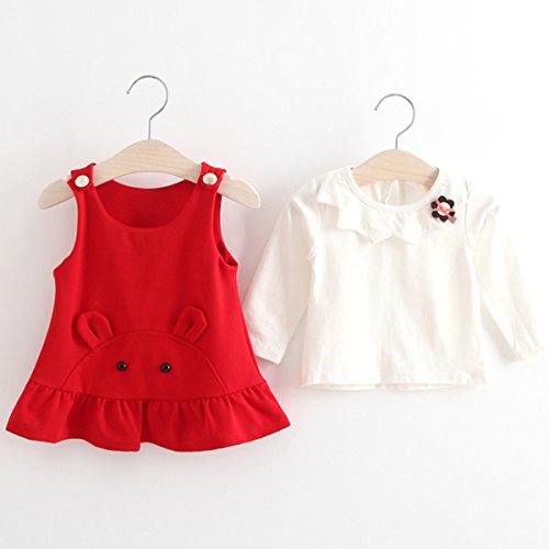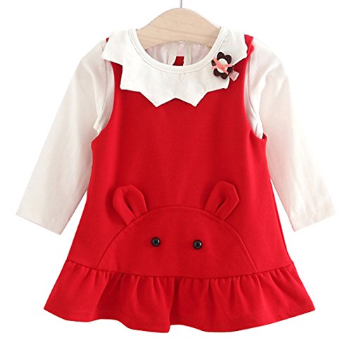YY-Natuhi ベビー服 子供服 女の子 ワンピース ブラウン 二点セット サロペット キッズ スカート 新生児 ボディースーツ ベビー 長袖 赤ちゃん 入学式 出産祝い 七五三 ウサギ フレア 綿 (80cm, 2レッド)