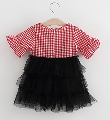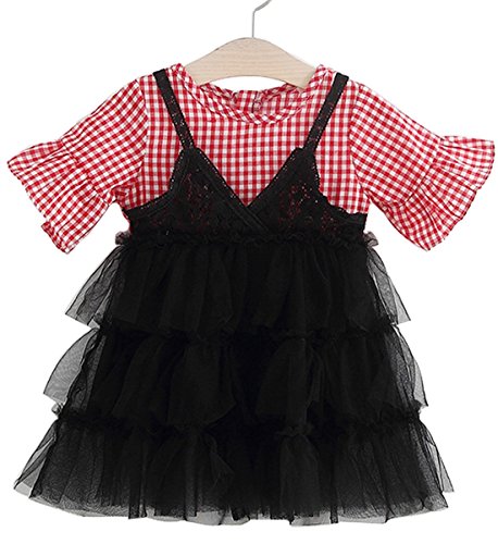 YY-Natuhi ベビー服 子供服 女の子 ワンピース カジュアル 女児 かわいい ドレス プリンセス キッズ チェック柄 ふわふわ スカート 入園式 卒園式 赤ちゃん 七五三 出産祝い ベビースーツ 綿 春夏 (80cm, 2レッド)