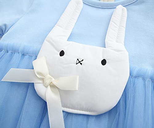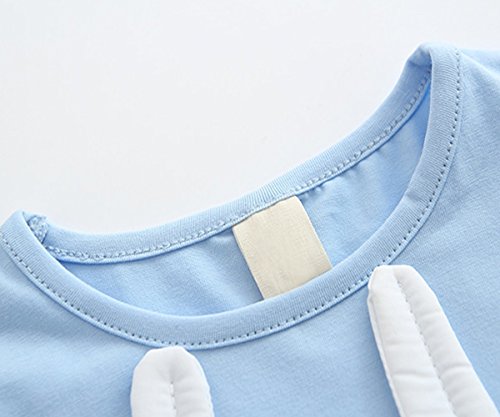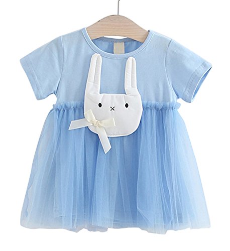YY-Natuhi ベビー服 子供服 女の子 ワンピース 半袖 カジュアル 女児 かわいい ドレス キッズ スカート 入園式 卒園式 赤ちゃん 七五三 出産祝い ベビースーツ 綿 春夏 ウサギ リボン付き (70cm, 1ブルー)