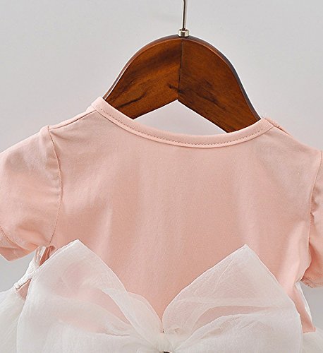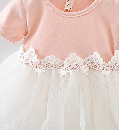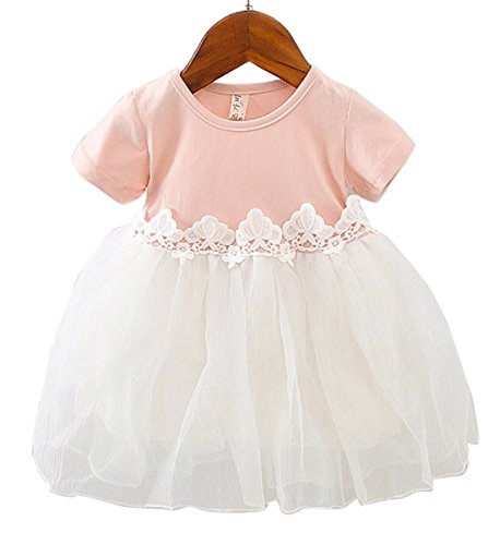 YY-Natuhi ベビー服 子供服 女の子 ワンピース 半袖 カジュアル 女児 かわいい ドレス キッズ スカート 入園式 卒園式 赤ちゃん 七五三 出産祝い ベビースーツ 綿 春夏 レース ふわふわ (80cm, 1ピンク)
