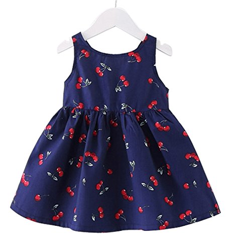 YY-Natuhi ベビー服 子供服 女の子 ワンピース チェリー柄 ドレス キッズ 女児 かわいい ふわふわ スカート 入園式 卒園式 赤ちゃん 七五三 発表会 ベビースーツ 春夏 ノースリーブ リボン (90cm, 2ネイビー)